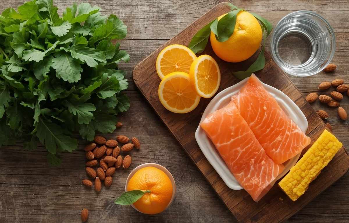 While eating foods that fight inflammation such as leafy greens fatty fish like salmon and crisp fruits and vegetables in your meals. These foods are good sources of omega 3 fatty acids calcium and vitamin C. They help reduce gum irritation and make bones stronger and make sure to drink a lot of water. It helps clean your mouth and keeps it moist.